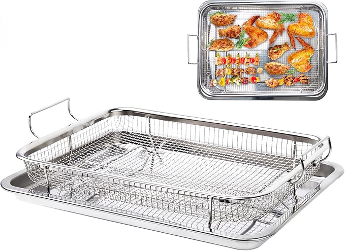 - **Raised Mesh Design:** Promotes optimal hot air circulation for even crisping on all sides.
