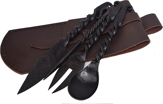 Viking Traders HandForged Medieval Eating Utensils Set Hand-forged steel, authentic design, leather pouch 4.5/5 πŸ›’ Buy Now
